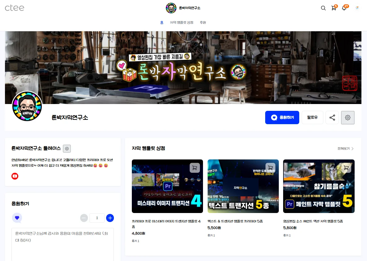 유튜브와 템플릿 제작을 병행하다 보니 평균 3~4시간만 자는 날도 많았지만, 그는 “작은 크리에이터도 부담 없이 활동할 수 있는 환경”을 찾기 위해 다양한 플랫폼을 경험했고, 그중 크티(CTEE)를 선택했습니다.