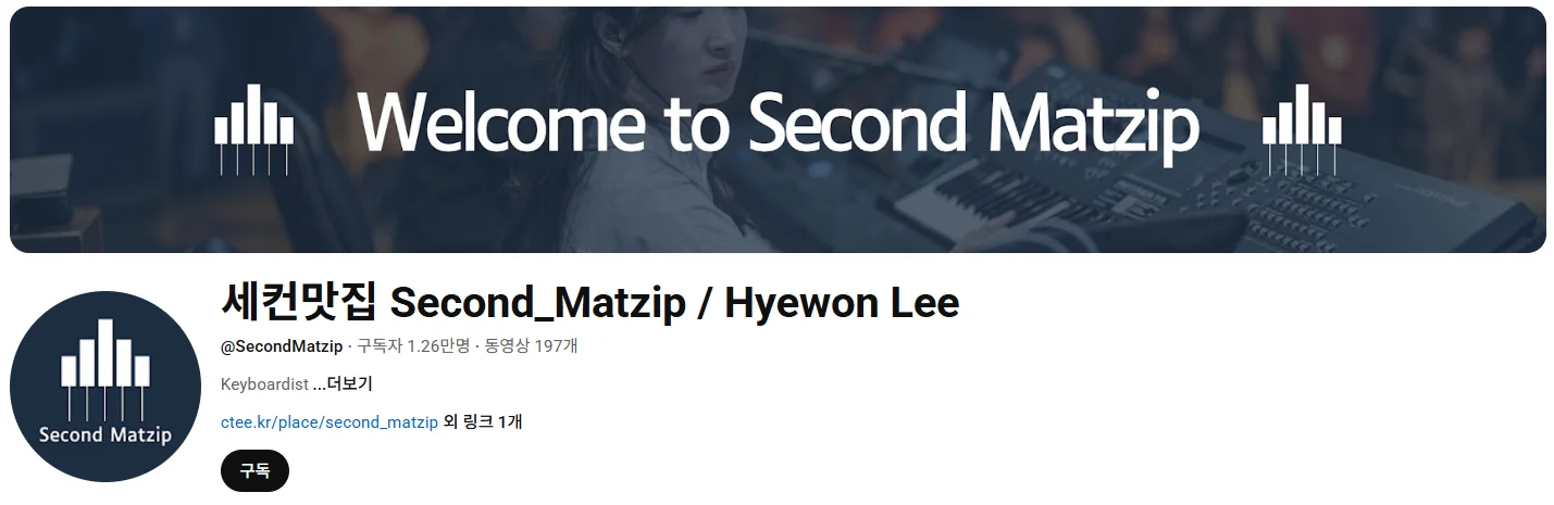 안녕하세요. ‘세컨 맛집’을 운영하는 키보디스트 이혜원입니다. 피아노는 약 30년을 쳐왔고, 현재 유튜브에 연주 영상을 올리며 12,500명의 구독자와 소통하고 있어요.
