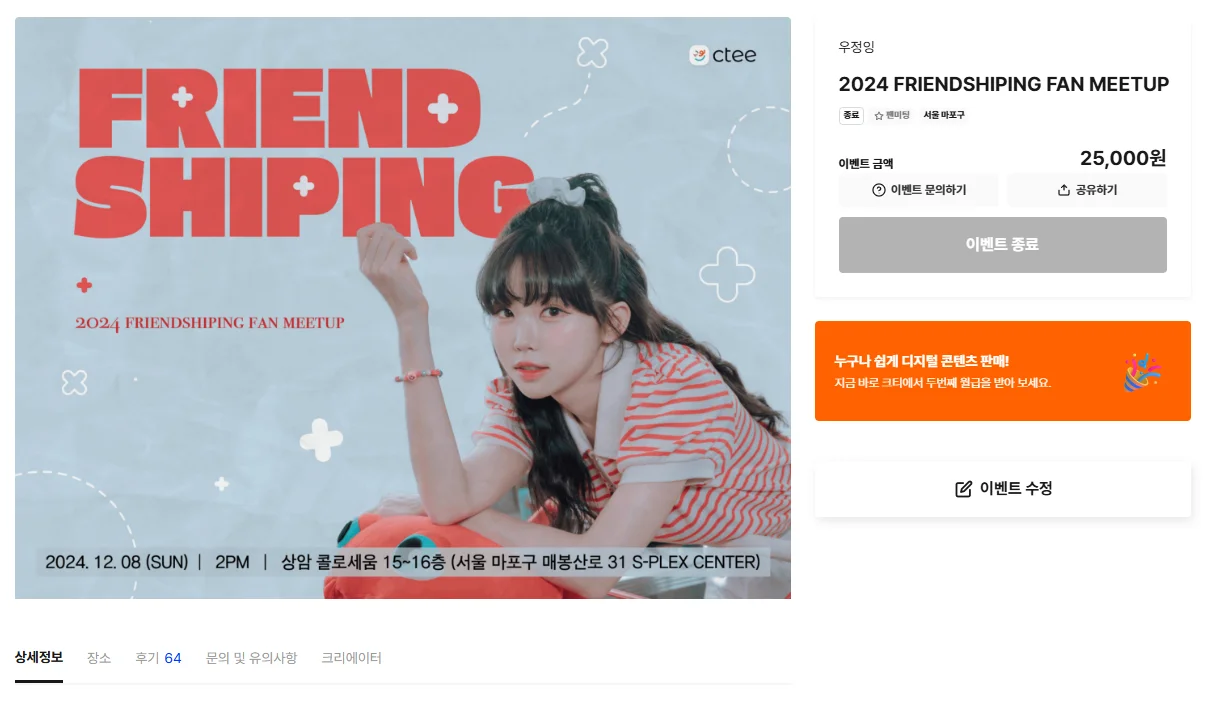 특히 크티(CTEE)에서는 멤버십 기능을 통해 디지털 콘텐츠 판매, 팬 후원, 커뮤니티 운영까지 한 번에 관리할 수 있습니다. 팬과 더 가깝게 소통하면서 안정적인 수익을 만들고 싶다면 지금이 멤버십을 시작하기 좋은 때입니다.