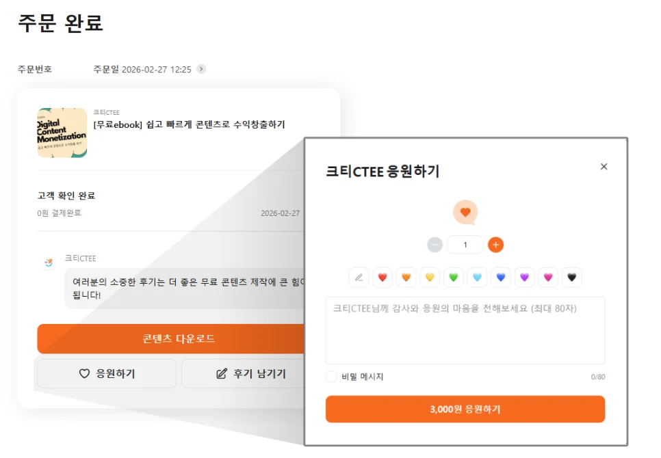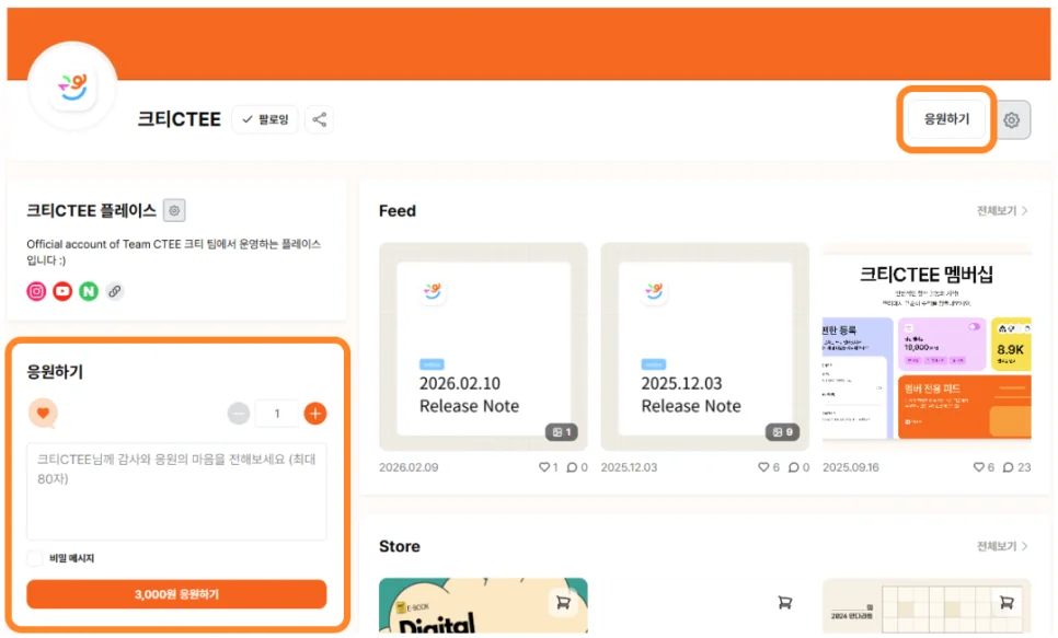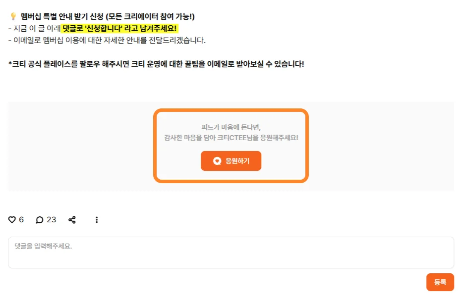 이렇게 눈에 띄게 [응원하기] 버튼이 생성되어 있습니다.