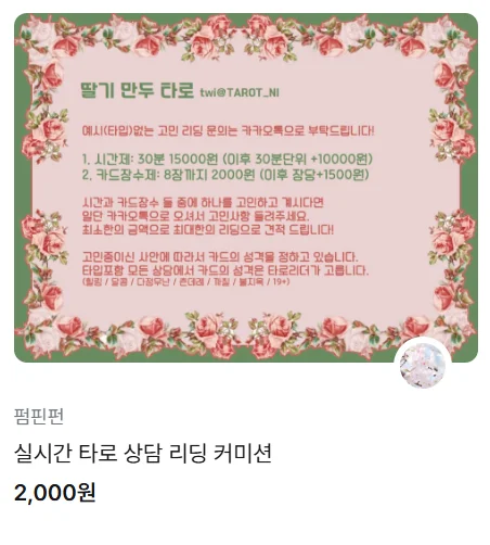 일러스트, 소설, 음악, 영상, 디자인, 타로 상담, 방송 화면, PPT 템플릿, 굿즈 디자인까지—맞춤형으로 제작 가능한 모든 콘텐츠가 바로 커미션의 대상이 됩니다.