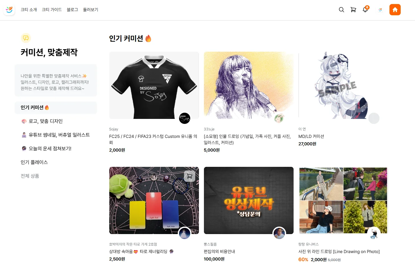 개인이 원하는 소규모 의뢰부터 시작할 수 있기 때문에 초보 크리에이터도 쉽게 시도할 수 있습니다.창작 활동과 수익을 동시에