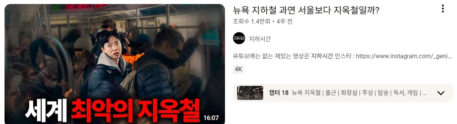 네. 솔직히 말하면 거의 안 봐줘요. 뉴욕 지하철 가서 개고생했는데, 조회수는 그냥 집에서 찍은 자취템 영상보다 훨씬 낮아요.