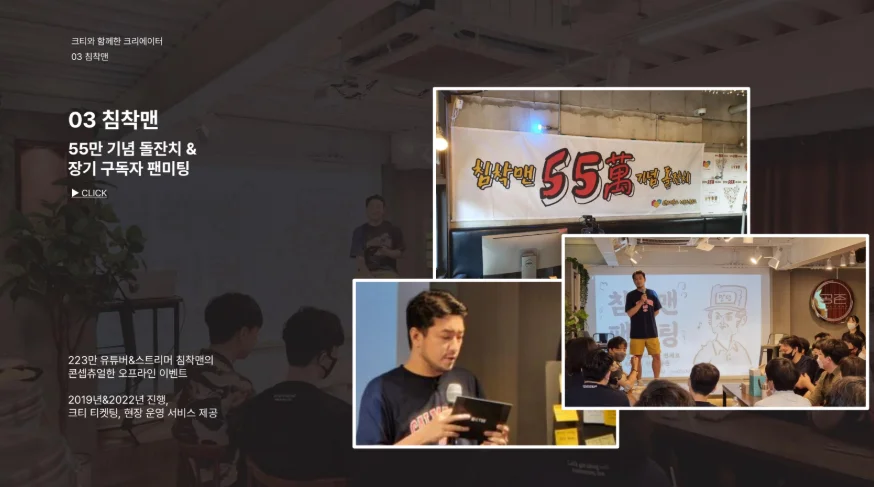 크리에이터 이벤트만 전문으로 진행해온 크티의 다양한 레퍼런스를 확인해보세요.