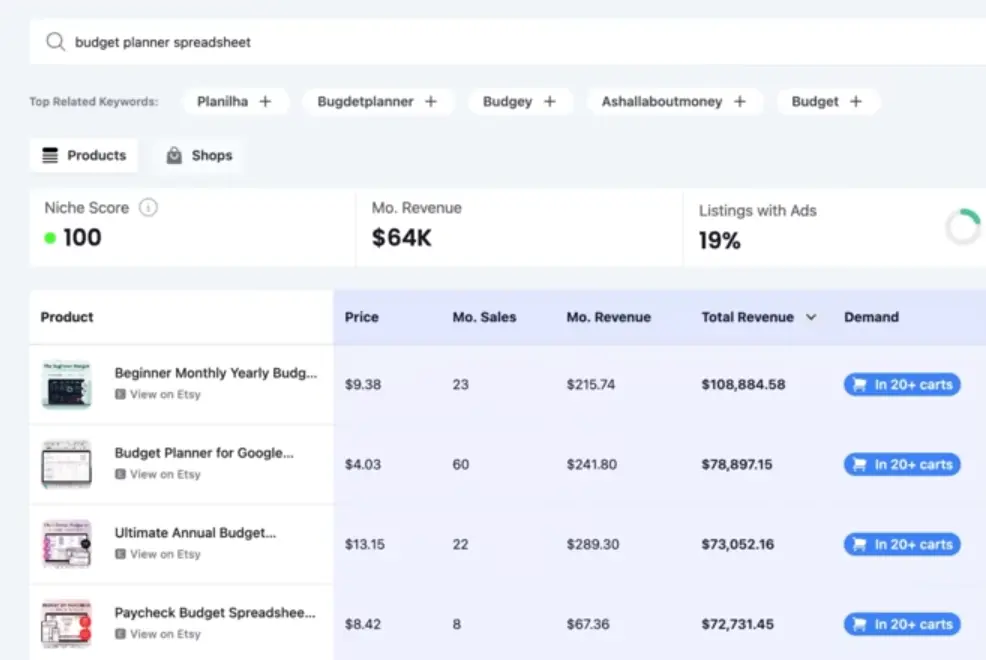 구글 시트 템플릿, 엑셀 템플릿, 노션 템플릿 등 예산을 관리할 수 있는 각종 프로그램의 템플릿 등이 높은 판매량을 보이고 있습니다.