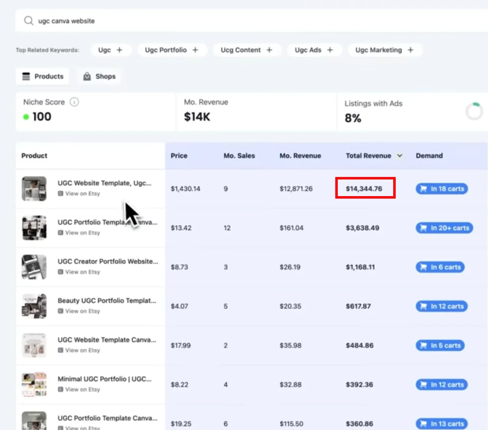 흥미로운 점은 템플릿 수가 훨씬 적은 상품도 비슷한 월 매출을 기록하고 있다는 점이었습니다.