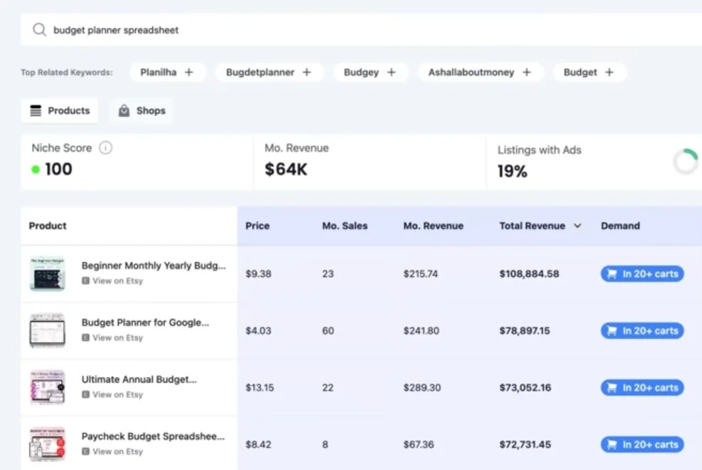 Budget Planner / 재무 관리 템플릿은 Etsy에서 꾸준히 잘 팔리는 스테디셀러입니다.
