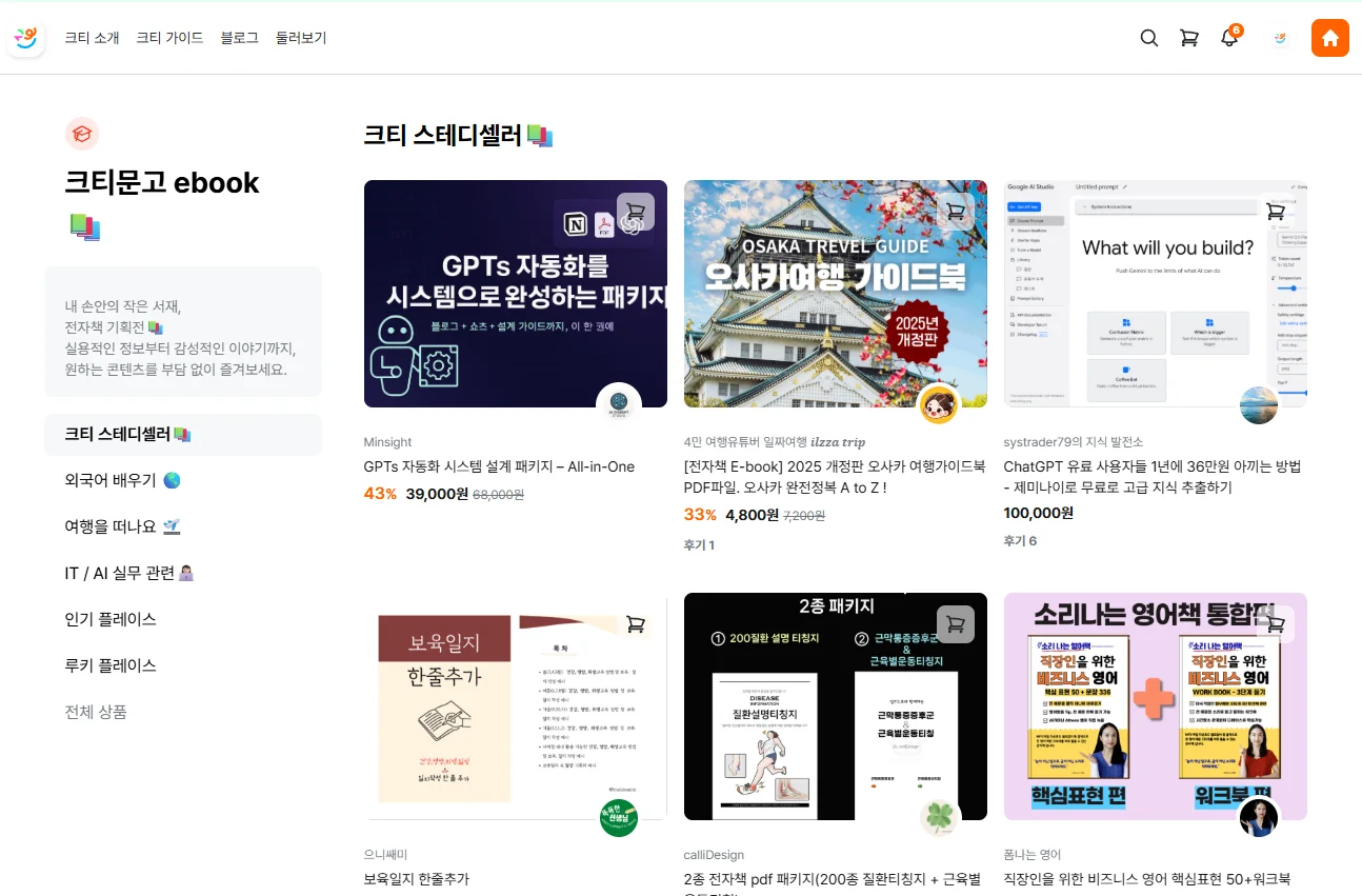 카테고리별(마케팅, 글쓰기, 디자인 등)로 묶어 판매하세요.