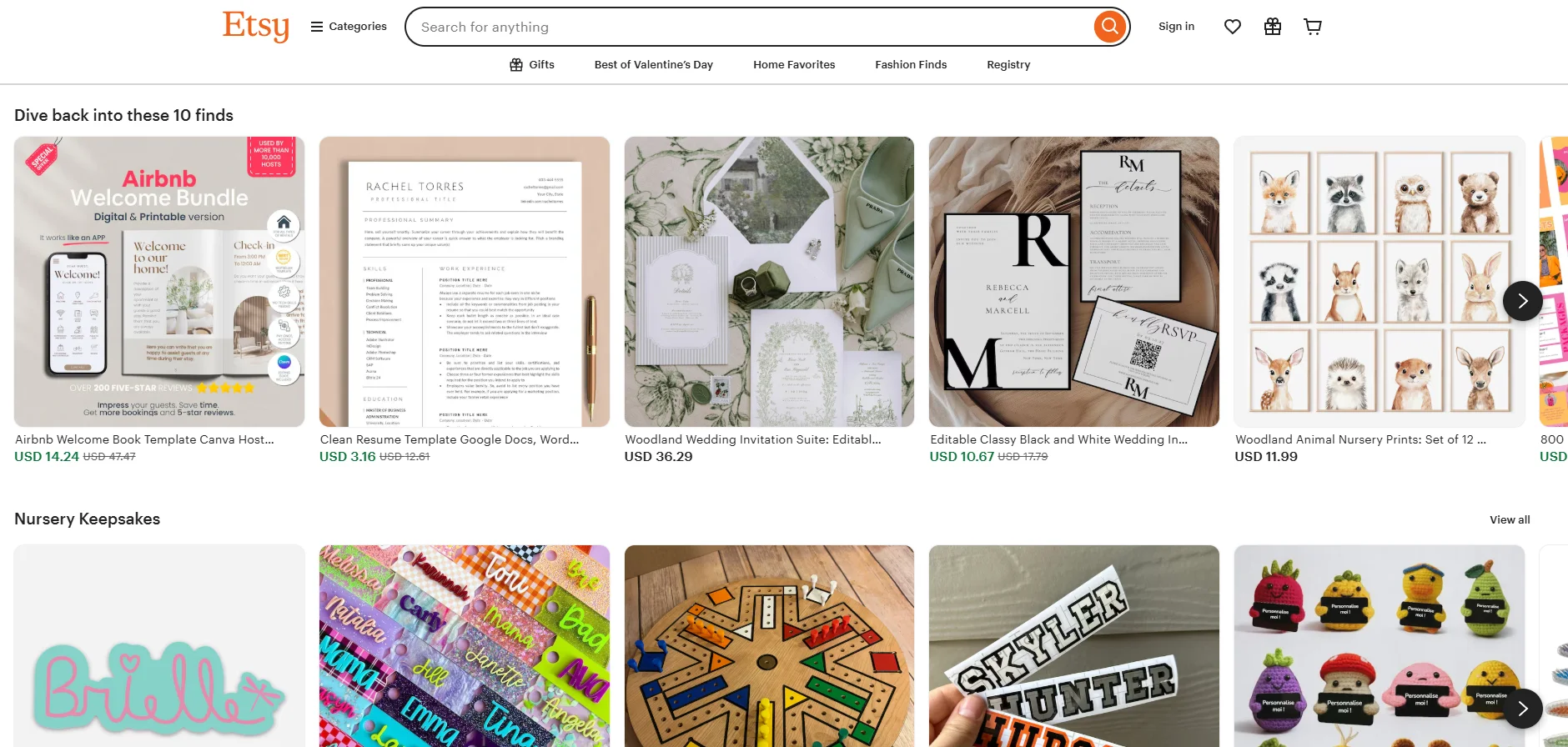구매자 입장에서는 “특별하고, 다른 곳에서는 쉽게 찾기 어려운 상품”을 찾기 위해 엣시에 방문하고, 판매자 입장에서는 이미 구매 의도가 높은 트래픽을 활용할 수 있다는 점이 가장 큰 특징입니다.