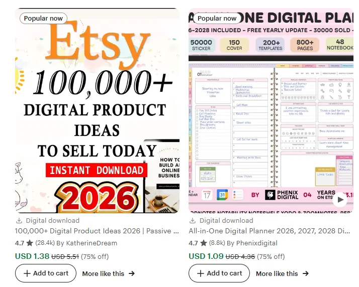이 구조 덕분에 전자책, 플래너, Canva 템플릿, 인스타그램 템플릿 같은 상품들이 엣시에서 꾸준히 판매되고 있습니다.