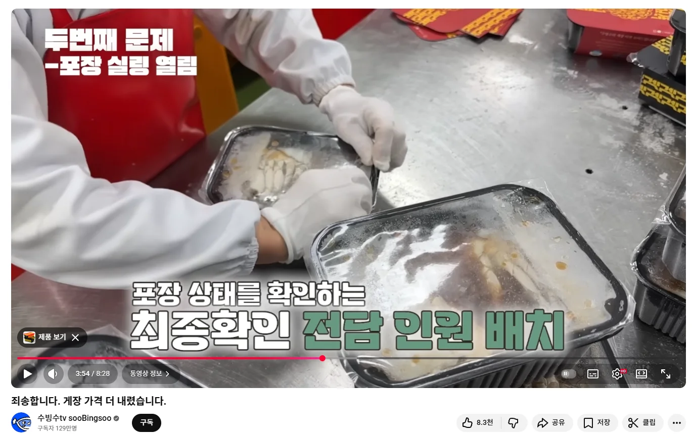 수빙수TV는 수산물 콘텐츠에서 트래픽이 강했고, 그 중에서도 ‘게장’ 검색 트래픽이 높았습니다. 실제로 “국내에서 게장 트래픽은 거의 1등으로 나온다”는 언급도 나옵니다. 즉, 이미 시청자들이 원하는 것이 쌓여 있었던 거죠.
