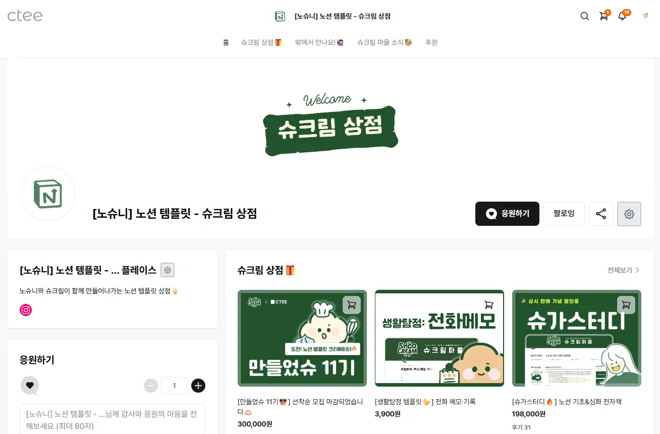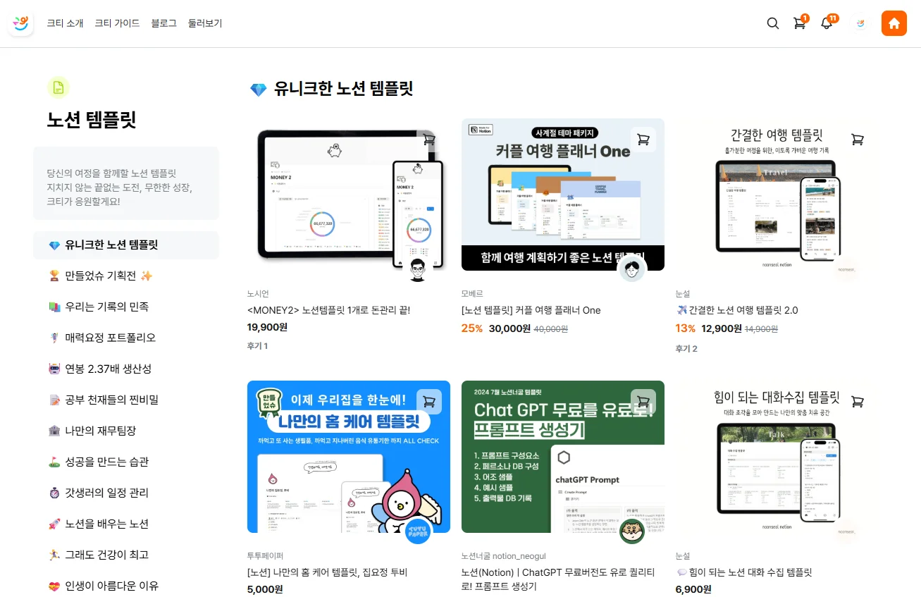 *노션템플릿 판매 플랫폼 크티의 노션템플릿 기획전 참고
