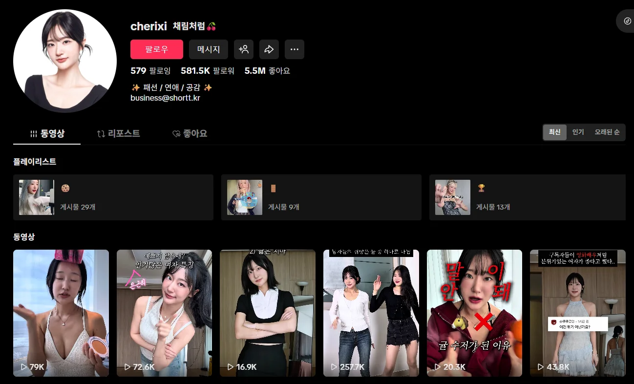 실제로 팔로워도 틱톡이 가장 많고, 그 기반 위에서 유튜브 쇼츠랑 인스타 릴스로 확장해 왔어요.